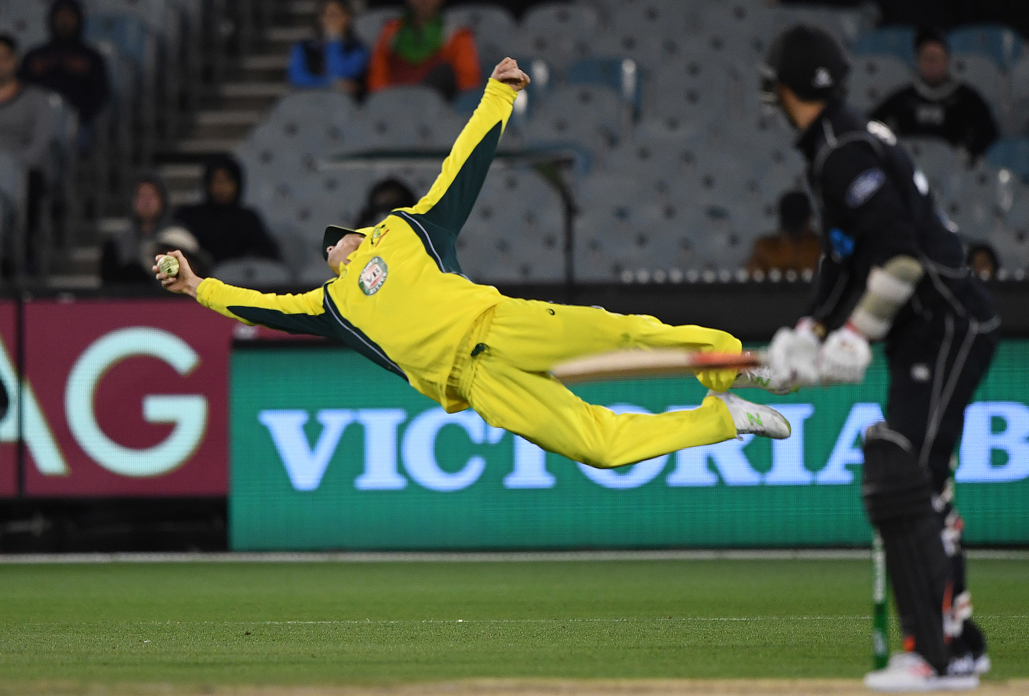 The in form Guptill and captain Kane Williamson were always going to be central figures in the run chase. Both got starts and looked good as they put on 30 together runs before falling. Guptill smashing Travis Head's first ball to cover for 34, while Williamson was adjudged LBW to James Faulkner for 13. It was a touch and go on field decision which Williamson challenged, but couldn't overturn as replays showed the ball hitting leg stump.
