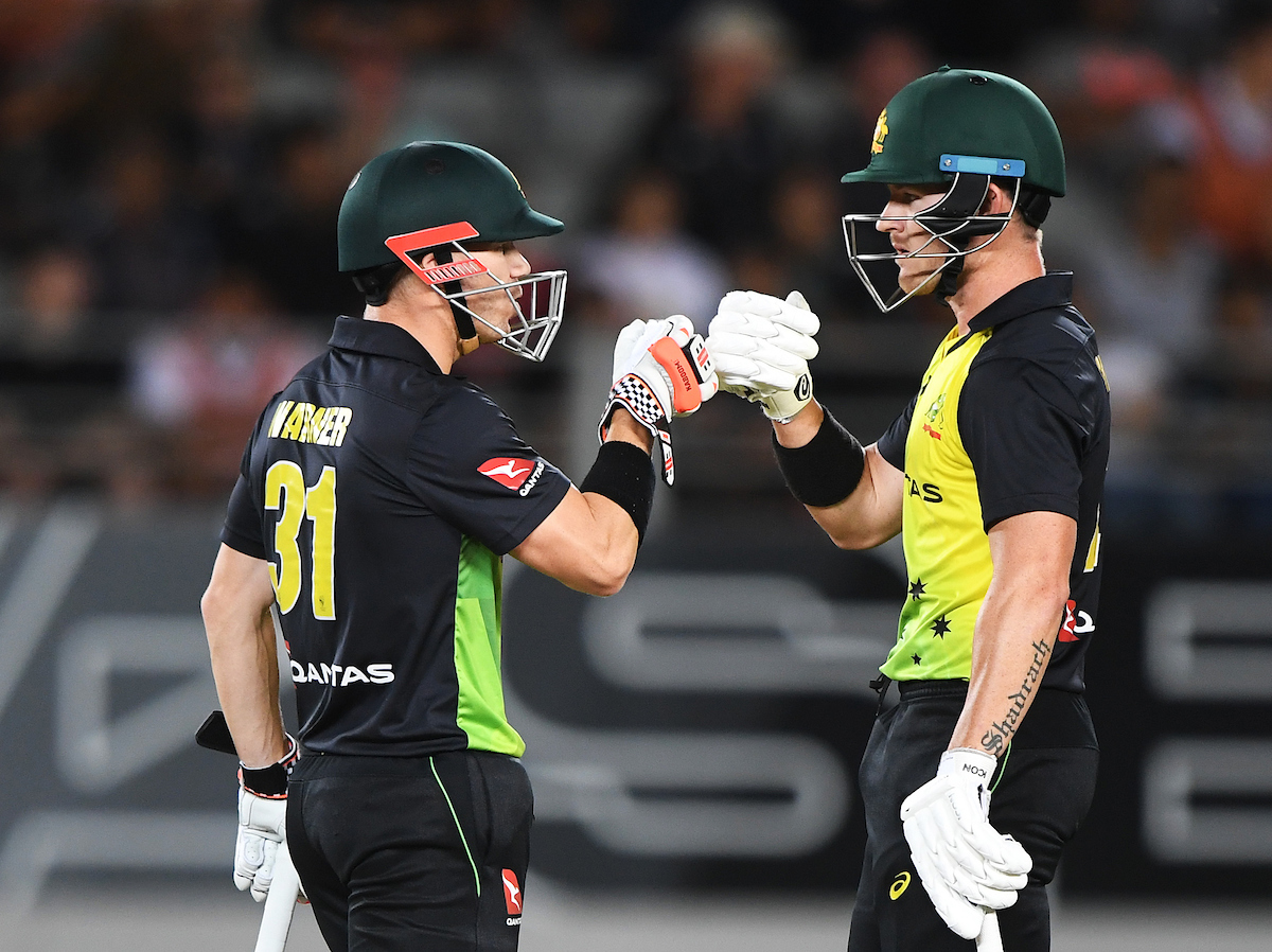 Australia bring 50 up in the 6th over. Just as the over finishes the rain starts to come down. Covers coming on with the score 55/0. Scoring | https://t.co/6eL1TNgabb #NZvAUS pic.twitter.com/fnXuF6uk9K