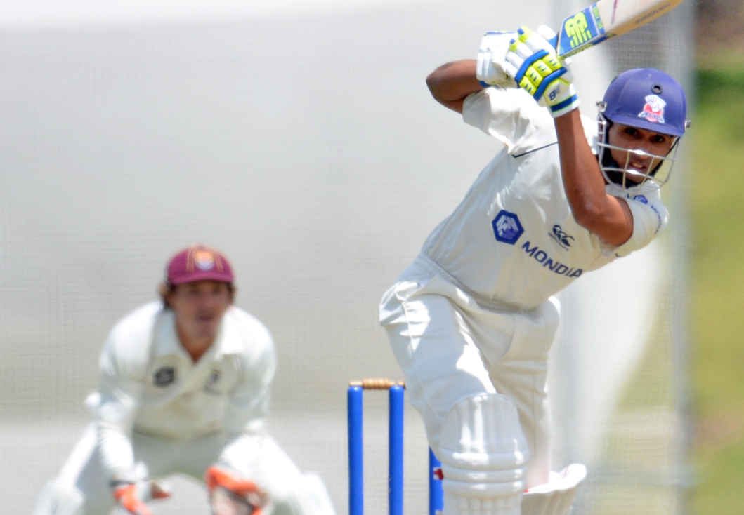 Joe Carter and Anton Devcich put on 49 before Carter gave way, but Devcich carried on for a fifty off 88 balls before Grobbelaar accounted for him, too. Devcich’s stand ended on 58, almost straight after drinks in the last session — the score 124/5 and the Knights still trailing by 232 runs.