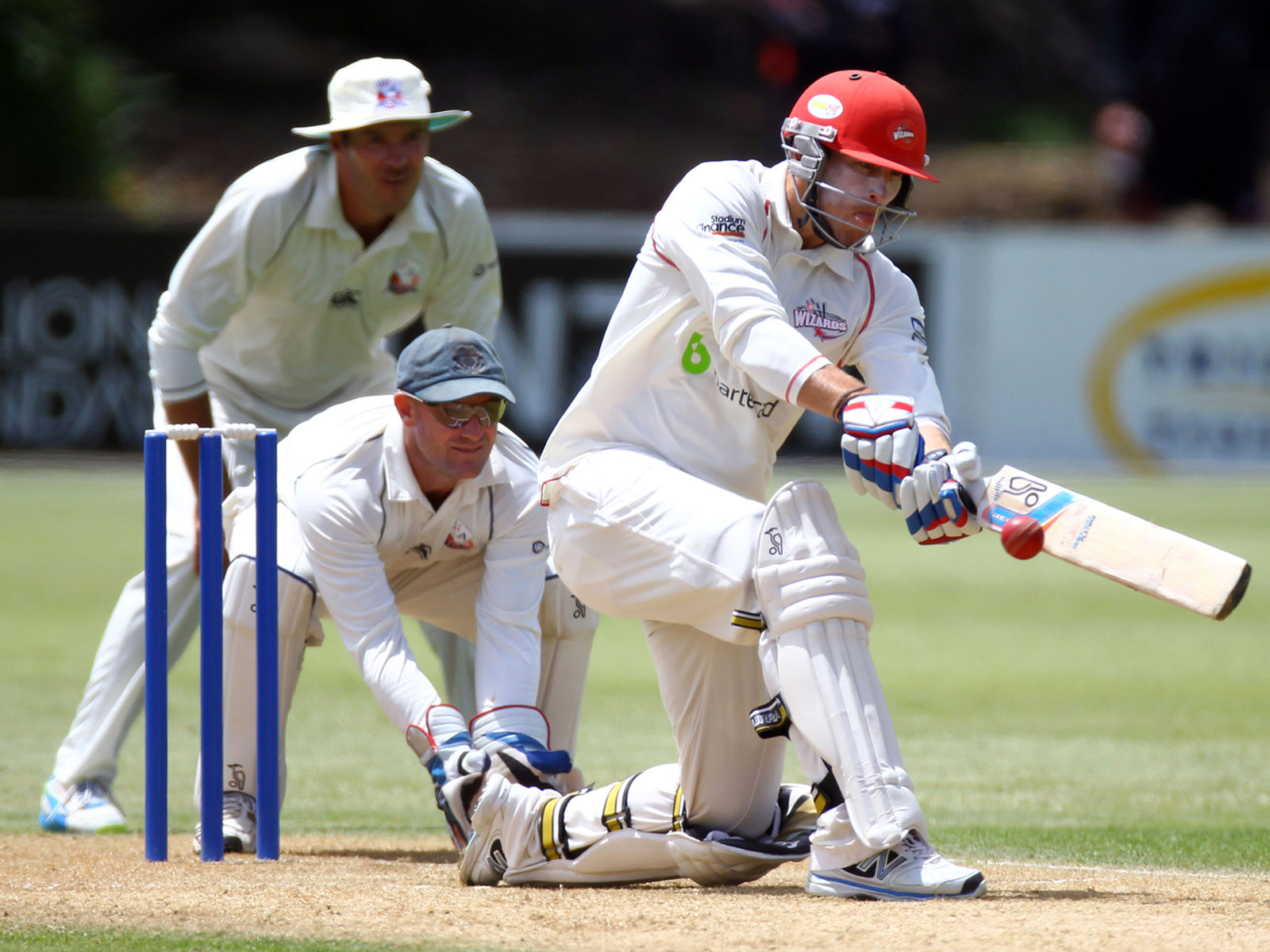 Ravel went on 107, and Donovan Grobbelaar (51) and Bruce Martin (29) made watchful progress to increase the Aces' lead, before Martin went caught by Peter Fulton from Todd Astle, and Grobbelaar was removed by Shanan Stewart to trigger a mini collapse. Auckland lost their last four wickets for just two runs and Stewart wound up with figures of 4-16. The Aces will be disappointed not to eek out a few more runs from their tail to set the Wizards a larger chase. As it is, the last day is poised nicely, with both teams capable of taking the points.