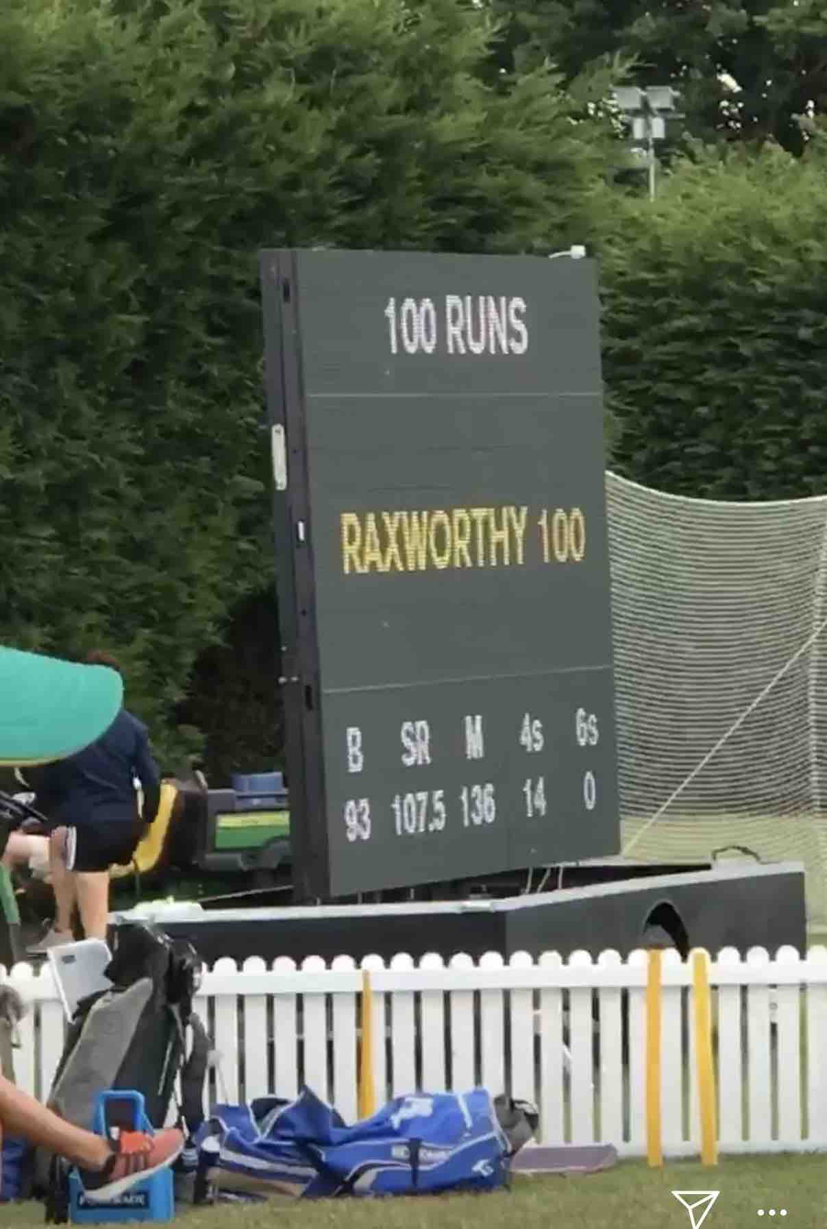 Meanwhile Raxworthy's big 142 off just 118 balls helped CD post a resounding 310 in today's one-dayer despite having been sent in by hosts Canterbury at Lincoln.