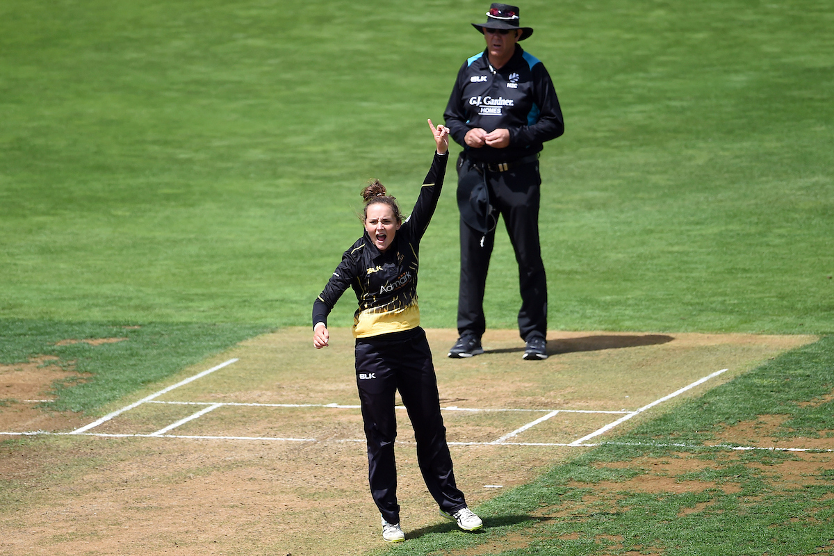 Deanna Doughty (above, PHOTOSPORT) starred with the ball, claiming 5-29 and Amelia Kerr taking a startling 4-8 off her 5.1 overs before flying out to Australia for the WHITE FERNS' Rose Bowl series.
