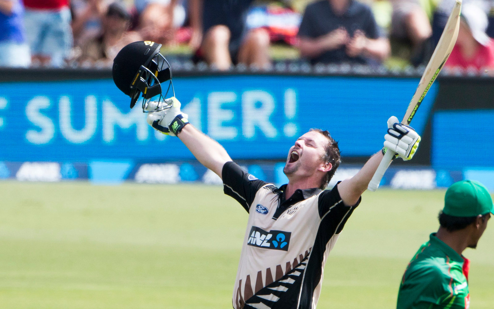 Colin Munro take a bow! He soaked up the early pressure and made Bangladesh pay at the end as he smashed and bashed his way to the fourth Twenty20 international hundred by a BLACKCAP. The left hander (and occasional switch hitting righty) bludgeoned seven sixes and seven fours in his 52 ball hundred and joined an exclusive club including Brendon McCullum and teammate Martin Guptill.