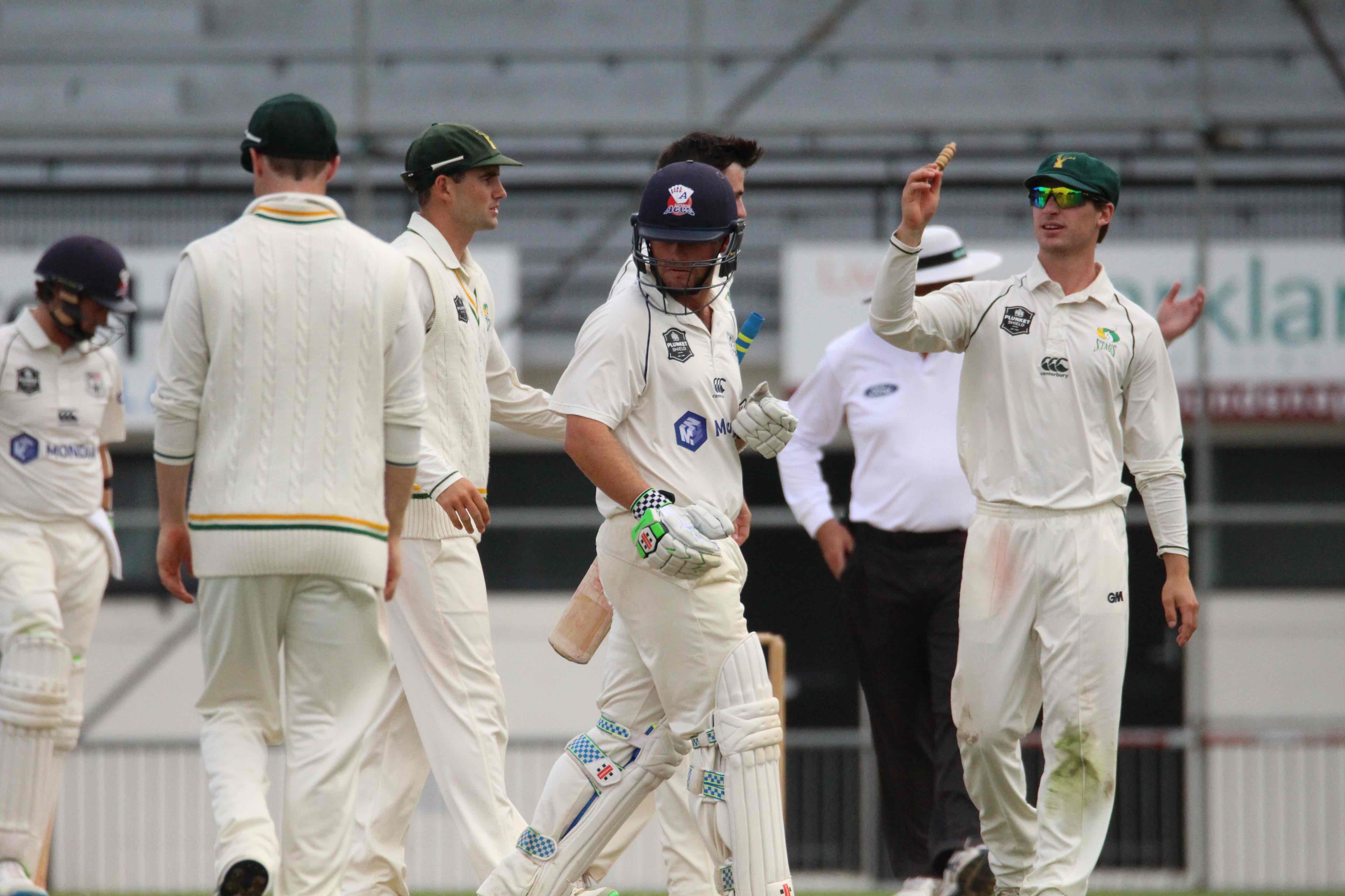 In a dominant period for the Stags, Colin de Grandhomme was also unable to keep his wicket, and had to follow on O’Donnell’s heels.