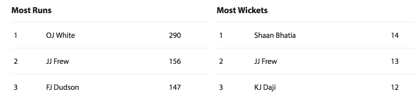 But some outstanding bowling from Frew, picking up five wickets in quick succession, led his side to a tight 19-run win.