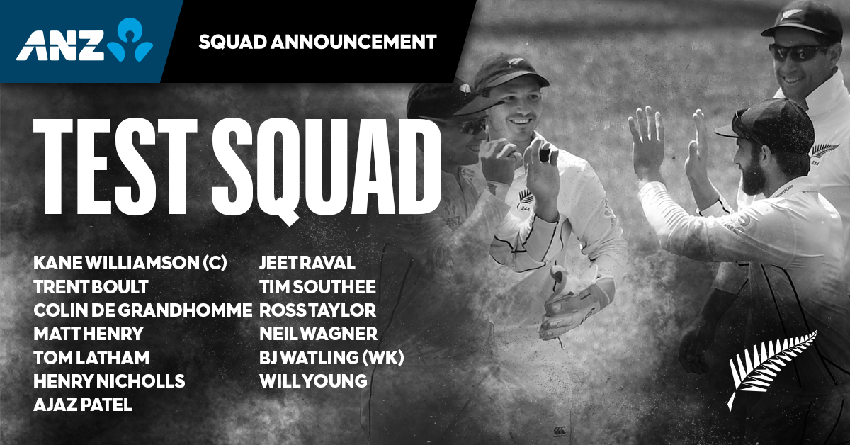 Patel is the specialist spinner in the 13 player squad, with Will Somerville and Ish Sodhi released to play in the the fourth round of the Plunket Shield along with Wellington Firebirds wicket-keeper Tom Blundell, who also drops out from the victorious UAE touring party.